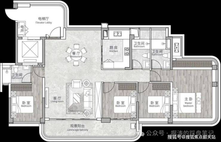 项目建面约 188㎡的 4+1 房三厅四卫户型,定位空中院墅级产品,以极致的空间尺度与功能布局,打造花都顶级的大平层居住体验。该户型具备六大核心优势,一是专梯入户设计,配备独立入户门厅,打造专属归家仪式感,出入尽显尊崇;二是别墅级前厅设计,独立入户玄关与会客前厅联动,实现会客与居家功能分区,欢聚与私密两相宜;三是双景观阳台设计,南北双向宽景阳台,一面揽阅湖景风光,一面尽赏园林盛景,盛纳四时风光;四是豪华三套房设计,三间卧室均配备独立卫生间与衣帽间,每位家庭成员都能拥有专属的私属空间;五是 LDKB 一体化设计,客厅、餐厅、厨房、阳台一体化贯通,面宽超 8 米的大方厅设计,打造阔绰的家庭生活主场;六是南向四开间布局,整体南北通透,实现全明空间设计,清风与阳光自然入户,打造极致的舒适居住体验。