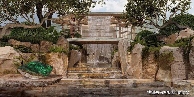 业主归家路径宛如一场园林漫步:小桥流水、叠瀑清音、花径曲幽,四季海棠次第盛开。更难得的是,项目在架空三层打造空中花园,午后可在此围炉煮茶、观影露营,俯瞰中央公园全景,都市谧境不过如此。