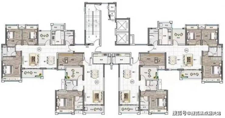 两梯四户低密,户户南向,户型使用率较高,加上赠送面积可达90%。