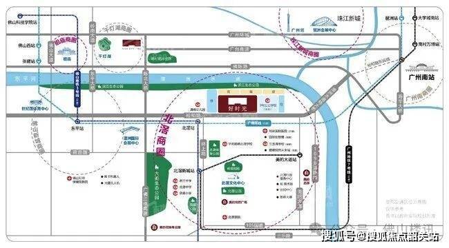 美的卓越好时光位于顺德北滘新城、佛山新城与陈村交汇处,距离广州地铁7号线美的大道站约1.6公里,佛山地铁3号线北滘西站2公里,2站直达广州南站,连通大学城南站。