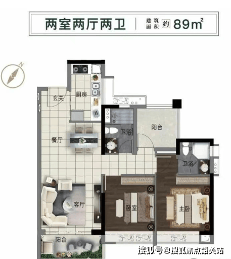 建面约89㎡的三开间朝南景观三室:适合三代同堂或二胎家庭。此户型主卧套房设计,确保了私密性;三开间朝南,能够最大限度地享受阳光与自然景观。
