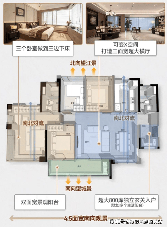 岭南地区气候潮湿,广府人对房屋的朝向有着近乎执念的追求——非南向不住。皓悦滨江深刻洞察这一需求,在楼栋设计上反复推敲,最终将两栋住宅朝东南向扭转,实现了户户全南向的壮举。无论是一楼还是顶层,每一户都能享受到充足的阳光和良好的通风,彻底告别北向房的阴冷与潮湿。