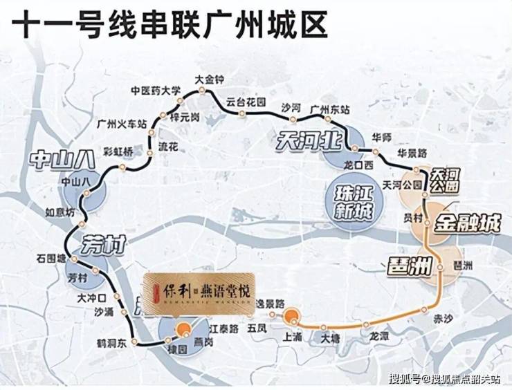 燕岗站(广佛线+11号线):步行200米直达,11号线(广州首条环线)通车后,8站直达琶洲CBD,7站至珠江新城。