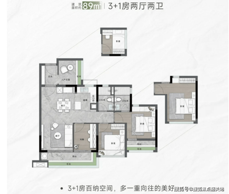 (二)89㎡四房两卫:刚需改善,灵动多变