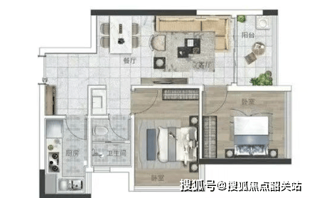 64㎡两房两厅一卫:三开间采光无遮挡,创意玄关实现智慧收纳;