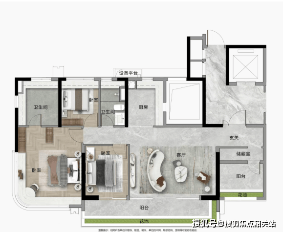 小户型亦不妥协,108㎡产品带入户花园,使用率显著优于同类产品。