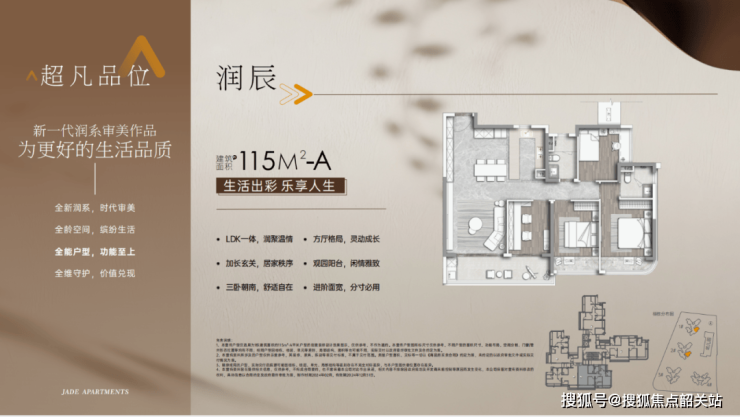 建面115平四房两卫:从玄关到客餐厅再到主卧均做到了南北对流,五开间朝南,整体采光极佳。