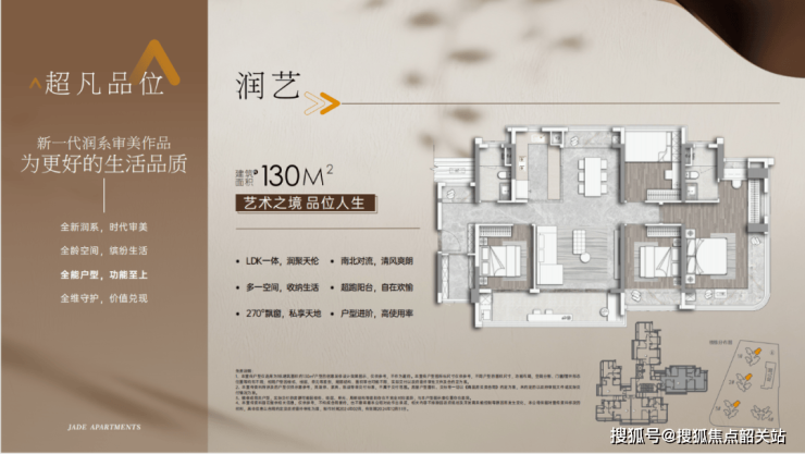 建面130平四房两卫:入户即见对景式玄关,LDKB一体化设计,客厅开间超4米,主卧配备270度全景舱,观景体验绝佳。