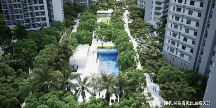 小区由7栋16至33层的高层组成,采用前后两排错落布局。前排4栋较高(32–33层),后排3栋控制在17层以内,不仅拉开了楼间距,也避免了“水泥森林”式的压迫感。建筑外立面以浅灰与米白为主,搭配横向线条,整体风格简洁耐看,没有过度堆砌装饰,符合当下主流审美。