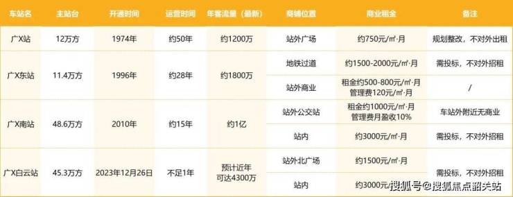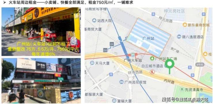 传统高铁商铺,一铺难求,站内国企独营,商铺租金3000元/㎡·月起,进驻门槛高;广州站、广州东站以及南站附近商铺租金最低500元/㎡·月起;广州白云站大湾区唯一可售高铁上盖商铺,坐享广州白云站千万的商旅客流,唯一无需招标、最低门槛可进驻的高铁商铺,做全国首批高铁商铺业主。