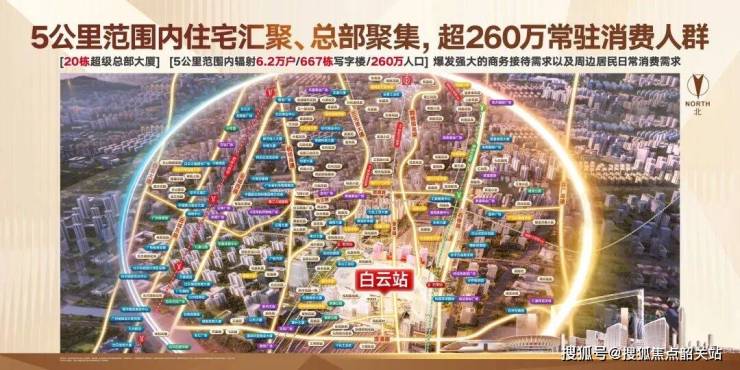 白云站预计未来日均客流将达20万人次;商铺楼上数万固定办公客群消费所指,周边超170+重点项目、20余栋超级总部大厦、超6.2万户常驻消费人口。