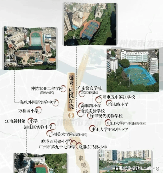桂悦东晓周围教育资源丰富,包括海珠外国语实验中学附属小学(由万松园小学和海珠实验中学联合创办),距离项目约200米左右;还有海珠实验小学、万松园小学、南武实验学校等。对于初中阶段,广州五中、海珠外国语实验中学、南武中学附属学校等都在派位表中,但需通过摇号入学。
