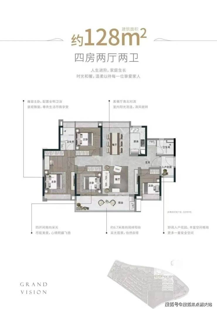 107㎡三房两厅两卫户型,拥有约6.6米大面宽阳台,搭配4.2米阔绰客厅,阳光清风自由入户,大尺寸主卧套房配备观景飘窗,可根据需求灵活改造空间。128㎡四房两厅两卫户型,打造约6.7米南向阔绰阳台,四开间南向采光实现南北对流,舒适入户花园兼具收纳与安全功能,雍容主卧全明设计,满足改善家庭的品质居住需求,每款户型均以实用主义为核心,最大化提升居住舒适度。