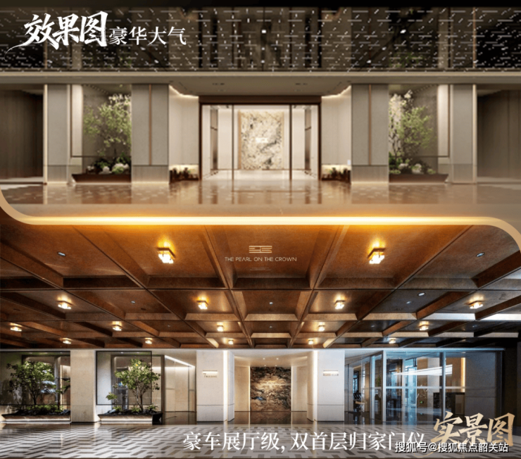 如果说交付仪式是招商华玺的“面子”,那么其公区的美学呈现则是其“里子”。在大多数豪宅还在思考如何达到效果图与实景图1:1兑现时,招商华玺已经实现了近乎1:2的超期兑现。这种超出100%的兑现率,源于其对超越经典审美标高的坚持,以及对引领豪宅超前想象的执着。从归家大门到地下车库,每一个细节都被打磨成了艺术品,展现出一种横溢的奢华与独特的识别度。