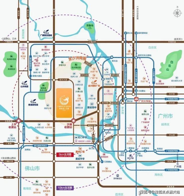 无缝对接广州:西北面接里水中心区域,东面连广州白云,南面紧邻广州荔湾,与广州各区无缝对接相通。