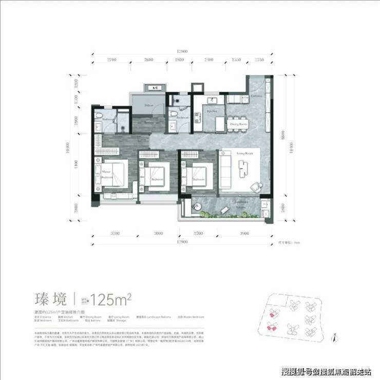 125㎡四房:南北通透,主卧套房设计,得房率超85%;