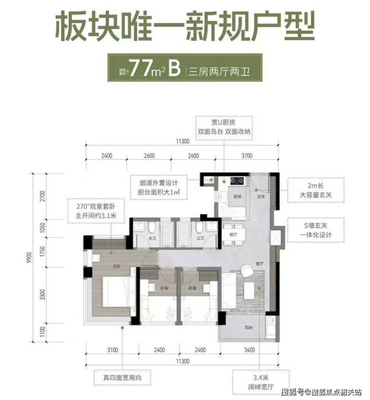 首开北区共9栋住宅,均为33层高的塔楼,采用2梯5户或2梯6户设计。主力户型集中在77㎡到105㎡之间,其中77㎡三房两卫的布局让我有点意外——次卧与书房共享飘窗,主卧带独立卫生间,得房率标称127%到137%,在新规产品中属于偏实用的取向。98㎡和105㎡则做了南北通透,阳台进深超1.8米,适合喜欢晾晒或种绿植的家庭。