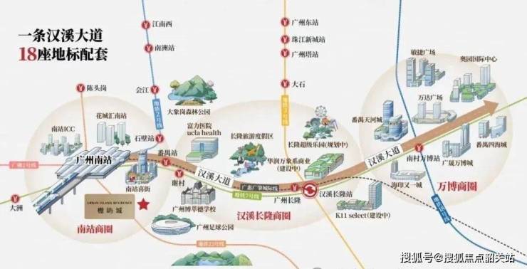 项目距离地铁2号线、7号线、佛山2号线及22号线四线交汇的广州南站约1.7公里,步行稍远,但门口就有3条公交线路接驳地铁站,早高峰打车到珠江新城平均25分钟左右。自驾方面,东晓南路、汉溪大道主干道就在附近,加上即将通车的海珠湾隧道,往海珠、天河方向会更顺畅。对依赖公共交通的家庭来说,虽然不算“地铁上盖”,但换乘效率其实不低。