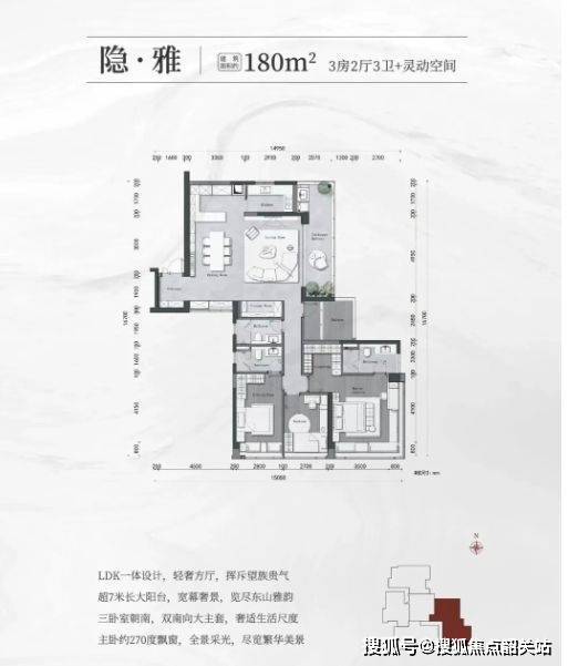 户型尺度宽裕,强调南向采光、套房体系与家庭礼仪空间,适配高改善需求。