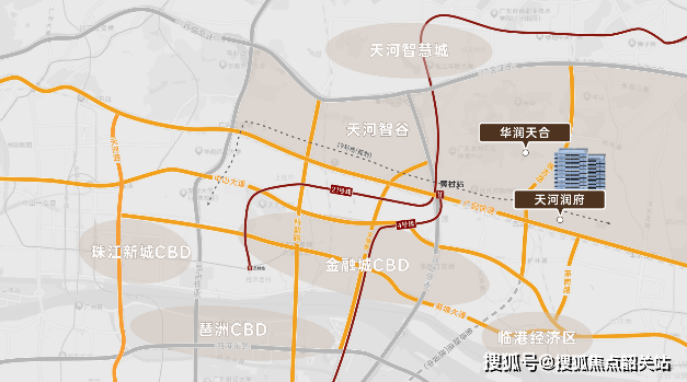 华润置地天河润府坐落于天河区广园快速路与茅岗路交汇处,拥有三纵三横的立体城市路网,经广园快速路可快速通达金融城、琶洲 CBD、珠江新城三大核心商务区,经珠吉路可直通天河智慧城,实现与广州核心产业与商务板块的高效联动。2025 年天河区将新建打通 “六横七纵” 交通主动脉,加快 80 个道路项目建设,区域交通路网将进一步完善,出行便捷度持续提升。