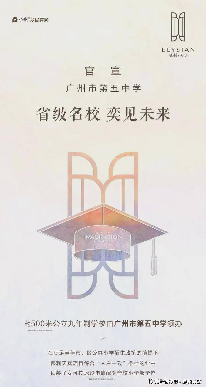 保利天奕教育资源丰富。项目旁规划了一所私立国际学校,形成 CBD + 名校的优质组合,提升居住价值与保值属性。地块东南侧规划有一所 36 班九年一贯制学校,现官宣由广州五中领办。从地理位置看,保利天奕与该九年制学校直线距离仅 500 米左右。据悉,在满足当年市、区公办小学招生政策的前提下,保利天奕项目符合 “人户一致” 条件的业主适龄子女可按地段申请配套学校小学部学位(具体以教育部门文件为准)。广州五中作为海珠区属中学的龙头,2024 年高考高优率高达 91.6%,其附属初中成绩也名列海珠区第一梯队,此次进驻琶洲南,极大地补强了整个琶洲的教育资源。