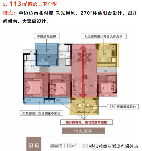 92㎡三房二卫:270°环幕景观阳台,南北对流采光通风良好。