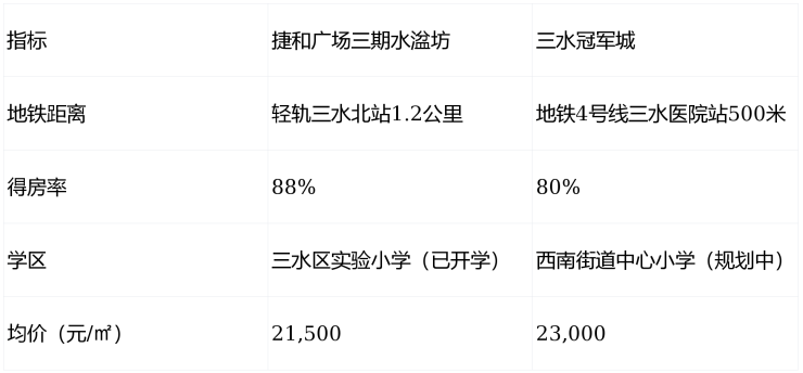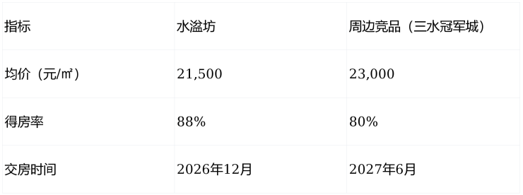 我们对比水湓坊与周边竞品(如三水冠军城)的选择逻辑: