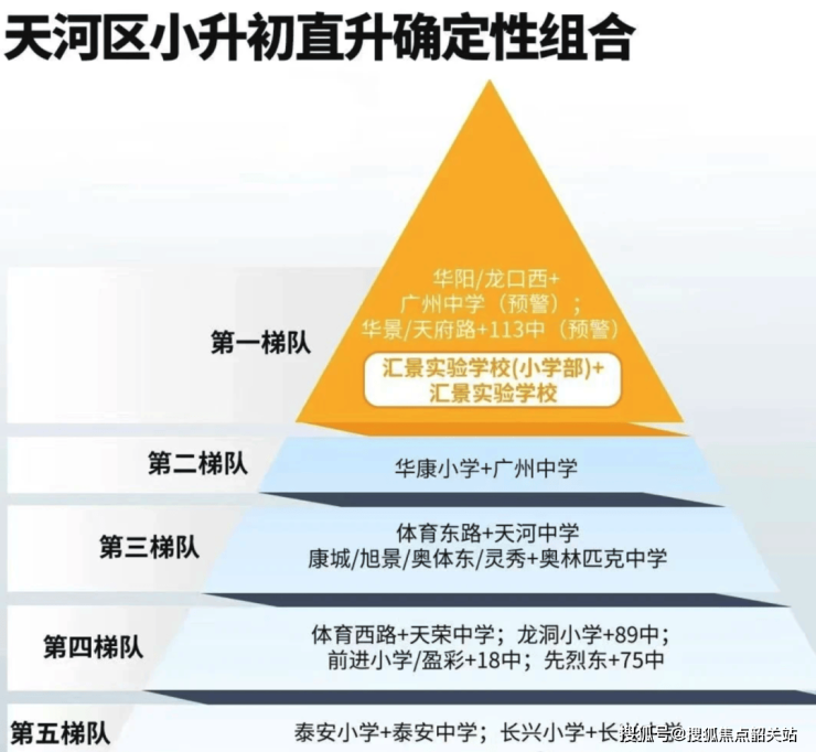 项目自建 9 班公立幼儿园、24 班小学、12 班中学,均为汇景实验学校,该学校属于天河第一梯队。学校与汇景实验中学本部 “一校两区”,由本部直接管理,师资和教学实力有保障。