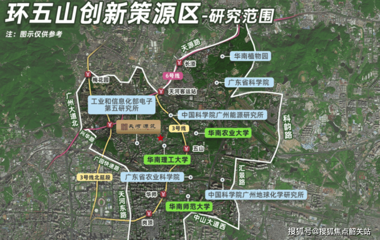 位于东莞庄,号称天河北后花园,地处 “环五山” 创新策源区,距离珠江新城仅约 4.5km,妥妥的市中心核心地段。“环五山” 创新策源区聚焦 “人工智能 + 数字经济 + 科技创新”,对广州未来十年的发展意义重大。