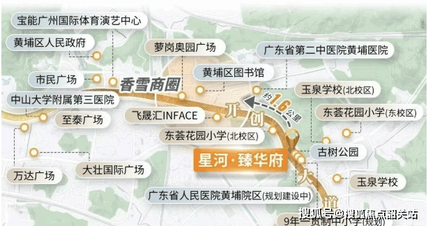 虽然项目距离现有的香雪地铁站直线距离约2.1公里,短期内可能需要电动车或公交车接驳,但这并不影响其整体的交通便捷性。事实上,星河臻华府所处的位置,正是广州东部交通路网的黄金节点。