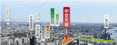 中交天翠位于海珠南洲板块,处于广州大道南和环城高速交汇处,紧邻两条主干道,虽受噪音和粉尘影响,但也因此具备便捷的交通优势。周边三大主干道环绕,自驾去琶洲、珠江新城和老越秀都很方便,未来东晓南放射线通车后,前往南洲将更加快捷,目前开车去珠琶两地基本半小时内可达。此外,门口规划建设的北濠涌引桥,建成后将拉近项目与地铁 2 号线和广佛线交汇处南洲站的距离,目前虽需绕路且步行距离超 900 米,但未来交通便利性将大幅提升,这使得项目在区位上具有较大的发展潜力,对于依赖自驾或期待未来交通改善的购房者具有吸引力。