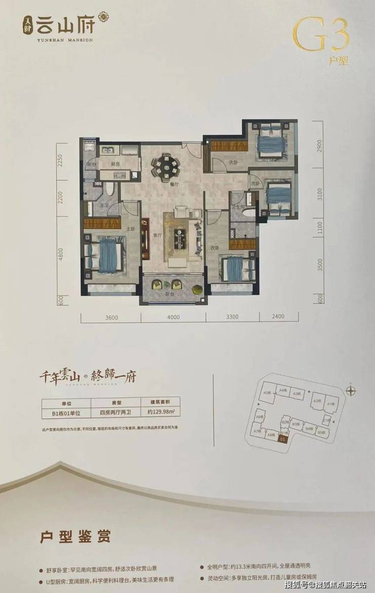 答:当前主推 B 区小高层,主力为 B3 栋、B5 栋一梯两户四房大户型,全盘仅余最后两套,户型为建面约 130-141㎡四房两卫。