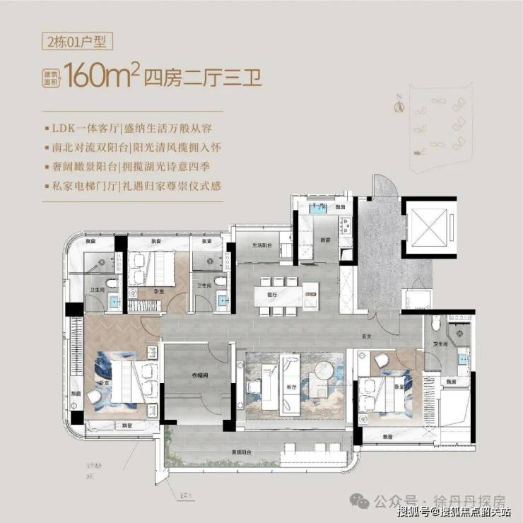 作为东建集团的标杆豪宅项目,东建映月湖壹号在产品打造上,始终坚持“匠心筑家、品质为王”的理念,从规划布局、户型设计、建筑品质、细节工艺等多个维度出发,以高端人群的居住需求为核心,打造全单边、全板式、全南向的纯大户奢居产品,确保每一套房源都能满足高净值人群对舒适、尊崇、私密的居住需求,彰显高端圈层的居住格调。