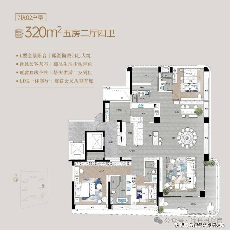 5. 匠心产品打造,纯粹高端圈层:仅8栋纯住宅、461席稀缺房源,全系160-320㎡纯大户户型,全单边、全板式、全南向设计;超宽楼间距(南北最宽108米、东西最大72米),户户270°环绕飘窗,得房率最高达106%;全系一线国际奢定品牌装修,无底商布局,圈层纯粹,适配高净值人群对舒适、尊崇、私密的居住需求,彰显高端圈层格调。