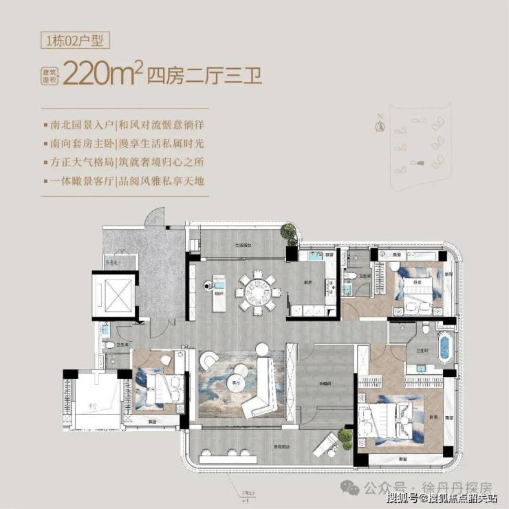 户型设计方面,项目主推约160-180-215-220-260-320㎡纯大户户型,全系采用全单边、全板式、全南向设计,确保每一套房源都能拥有良好的采光、通风与景观视野,契合高端人群对居住舒适度的需求。户型设计注重空间的实用性与舒适性,布局合理,动静分区清晰,公共区域与私密区域分离,既满足家庭聚会、商务宴请等公共活动需求,又能保证卧室区域的静谧与私密,提升居住体验。