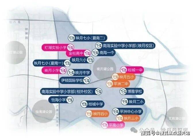 3. 全龄优质教育,百亿配套护航成长:依托映月湖片区5年超100亿元教育投入,周边环绕20所新建/扩建学校,新增近1万个学位,构建“幼-小-初-高”全龄教育链;户籍生明确划入省一级映月实验小学与桂城一中招生范围,周边3公里内多所省市级名校覆盖,社区配建18班幼儿园,让孩子在家门口就能享受高品质教育,解决家长教育后顾之忧。