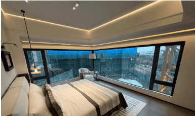 在家居配置上,客厅统一标配中央空调,制冷制热效果出众,运行静音稳定,能够快速调节室内温度,为居者营造舒适的居住环境,告别传统空调的噪音干扰与温差不均的问题。全屋配备智能马桶,兼具多种智能功能,提升卫浴使用的便捷性与舒适度,契合现代人居的品质需求。同时,项目搭载全屋智慧家居系统,居者可通过智能终端远程控制室内灯光、窗帘、家电等设备,实现智能化的家居生活,轻松掌控居家生活的每一个细节。窗户全部采用高品质的隔音玻璃,不仅能够有效隔绝室外噪音,营造静谧的居住环境,还具备良好的隔热保温效果,减少室内温度流失,节能环保的同时,让室内四季保持舒适温度。从大件家居配置到细微的工艺处理,滨江壹号都以高标准严格要求,用品质兑现对居者的承诺。