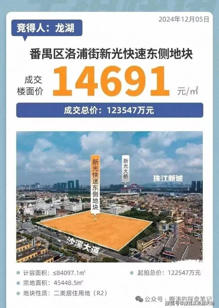 从拿地主体来看,国企央企仍是主力军。15 日出让的 4 宗地块中,天河区金融城东区地块由珠实地产底价竞得,南沙区两宗灵山岛尖地块被南投地产收入囊中,黄埔区长洲岛低密度江景宅地则由中交城投与科学城投资集团联合底价拿下。同时民企新势力的加入成为亮点,12 月 12 日,隶属于增城区民企永辉纸业的福牛地产,以约 3.1 亿元底价竞得增城区荔湖街一宗二类居住用地,这种制造业跨界地产开发的现象,为广州土拍市场注入了新活力。克而瑞广佛区域首席分析师肖文晓表示,当前房企投资策略趋向理性且有所侧重,优质地块的投资安全性得到普遍认可。