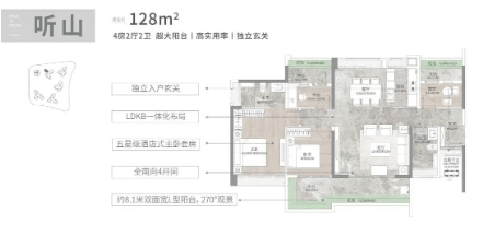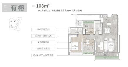 全能户型设计,带来极致居住体验:从108㎡到165㎡的多种户型,每一种都经过精心设计,力求在有限的空间内创造出最大的舒适度和功能性。所有单元均采用全南向布局,得房率接近100%,并配备全景落地窗和3.1米层高,让阳光和风景成为家中常客。LDKB一体化设计、南北双阳台、主卧套房等细节处理,进一步提升了居住品质。