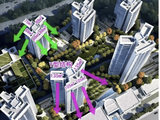 尤为值得一提的是,项目采用前后两排散点式布局,楼栋之间间隔达三四十米,有效避免“握手楼”或“一线天”等常见问题,最大化保障每户的通风、采光与私密性。前排为32-33层高楼,后排为16-17层小高层,形成错落有致的天际线,同时打造出通透开阔的中心园林景观。