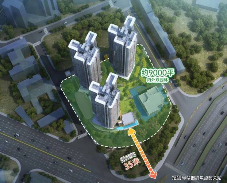 整体地块抬高约7~9米,退距约35米,形成一座隐藏在城市核心的低密浮岛,隔绝外界喧嚣。