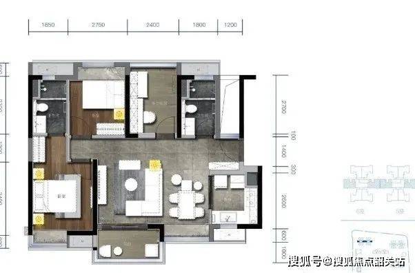 115㎡南北对流四房:片区唯一115㎡四房带主套产品,双阳台设计。