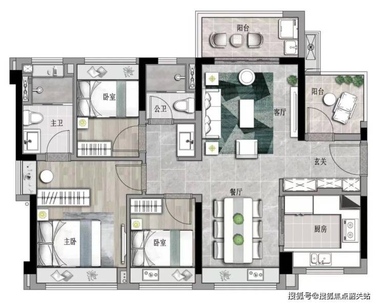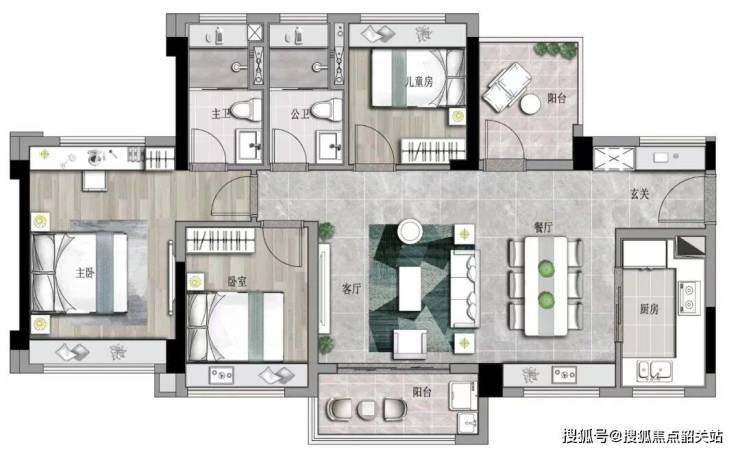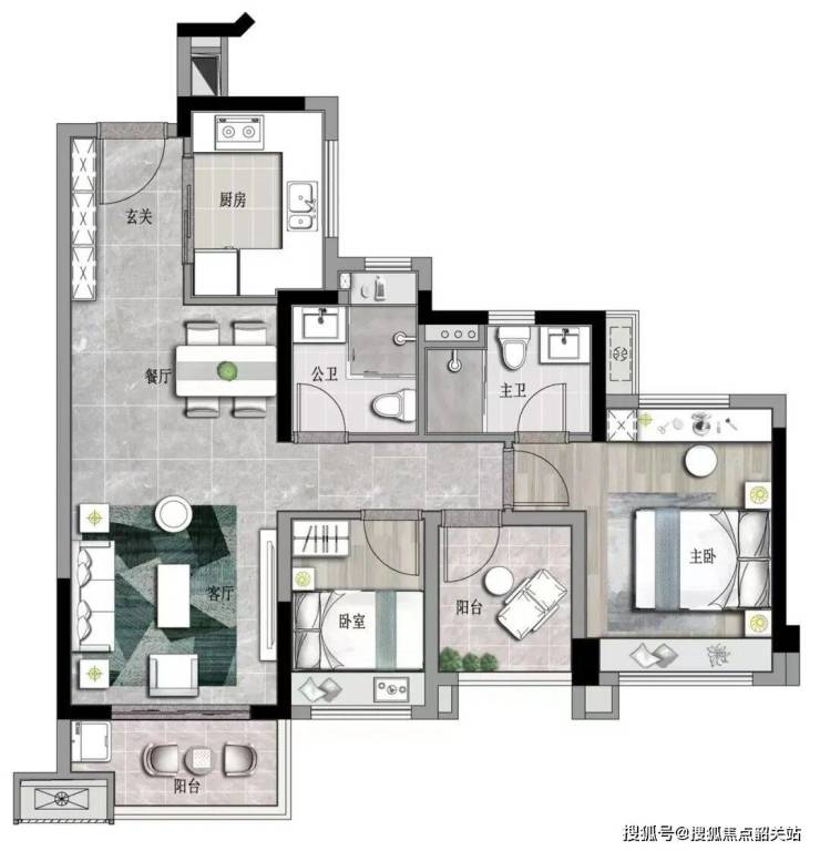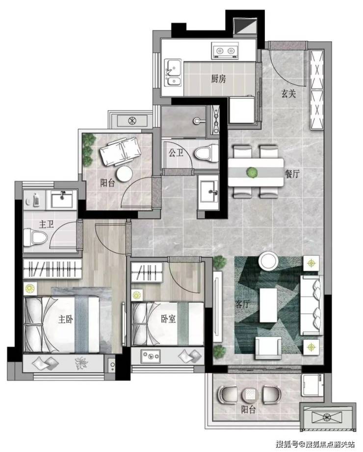 【约75㎡“3+1”房2厅2卫】