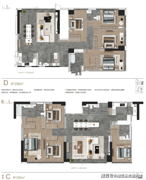 6号楼为江景楼王,总高43层,产品按低、中、高区划分:低区主打230-241㎡四房;中区提供206-260㎡大平层;高区则为278-375㎡顶级江景单位,楼层越高,景观越震撼,私密性与尊崇感越强。