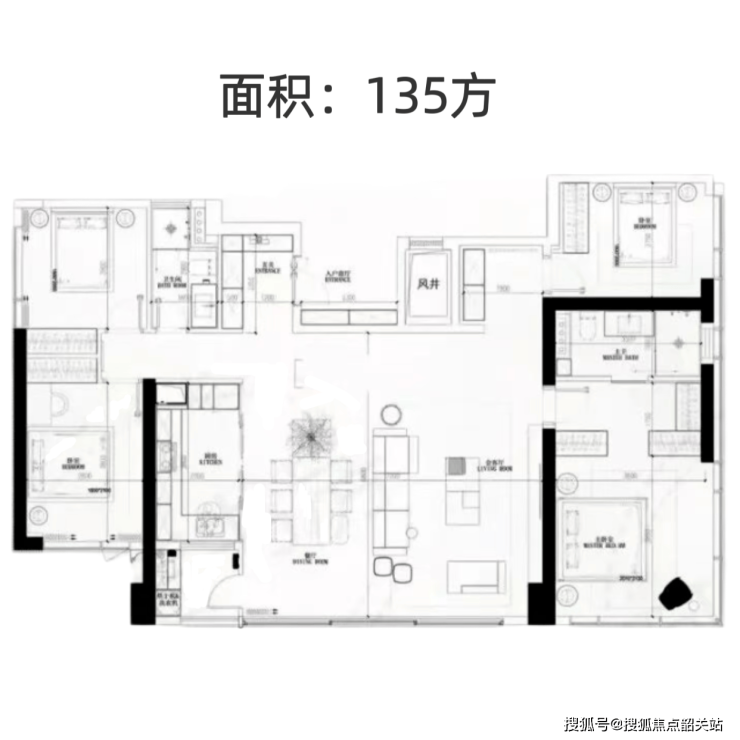 建面约135㎡四房三卫:这是加推的新品,非常适合多孩家庭或三代同堂。户型方正实用,动静分区清晰,三个卫生间的设计彻底解决了早高峰抢厕所的尴尬。认筹期间还能享受额外优惠,性价比极高。