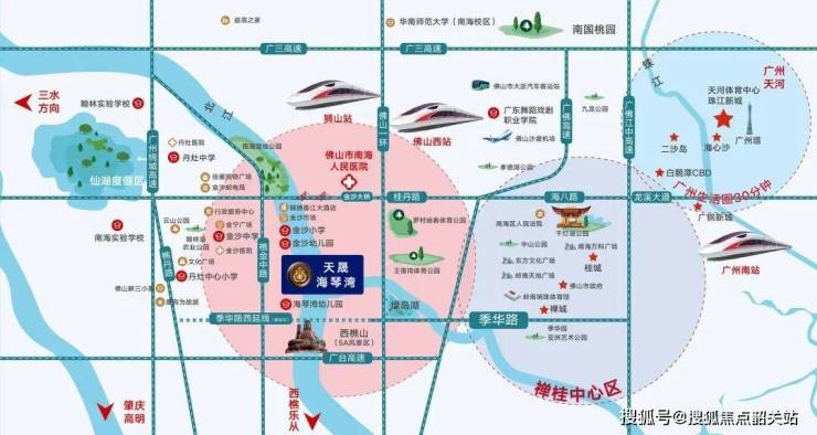 天晟·海琴湾地处丹灶金沙核心区,紧邻桂丹路主干道,享有“四横六纵”的快速路网,仅需一个红绿灯即可直达千灯湖,享受广佛双城的繁华配套。这一地理位置的优势在于它既能够享受到城市的便捷,又不失自然的宁静,使得居民在繁忙的都市生活中找到一片属于自己的净土。