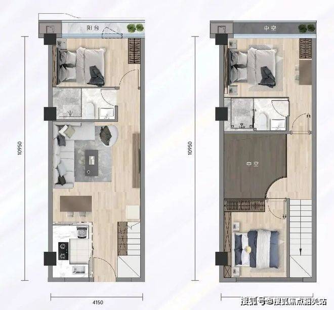 58㎡的户型则是三卧室配置,还带双主套,适合多人居住或者改善型投资。U型厨房动线合理,洗切煮一气呵成。中空设计让室内更有层次,4.15米开间保证每个房间都不压抑。这样的户型在小面积段里非常全能,自住能住得体面,出租收益也更有竞争力。