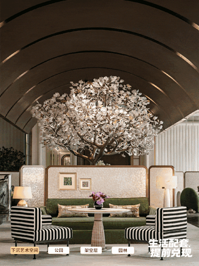 中建・白云之星内部规划 4 座公园,首推地块东邻黄边公园,约 2.6 万平方米黄边艺术公园为核心生态配套,打造舒适休闲空间。园林由 JTL 加特林国际设计团队操刀,采用酒店度假风立体园林设计,景观层次丰富。