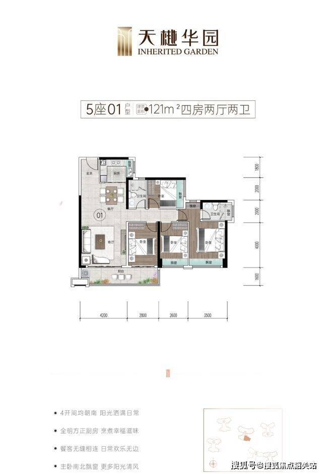 120㎡纯南向四开间的户型,布局方正,空间利用率极高。四个开间朝南,阳光充足,让整个家充满温暖。客厅与餐厅一体化设计,形成宽敞的公共活动区域,方便家人之间的互动交流。客厅外接景观阳台,可俯瞰园林美景,享受悠闲时光。厨房采用 U 型设计,操作台面充足,洗、切、煮功能分区合理,烹饪更加得心应手。主卧套房配备独立卫生间与衣帽间,为主人提供舒适私密的空间。其余三间次卧大小适中,可根据家庭实际情况布置为儿童房、客房或书房,满足不同阶段的家庭需求,是一款兼顾舒适性与实用性的优质户型。