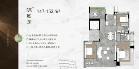 3T2户设计:配备保姆电梯和保姆房,业主独梯入户,保证了舒适性和私密性。